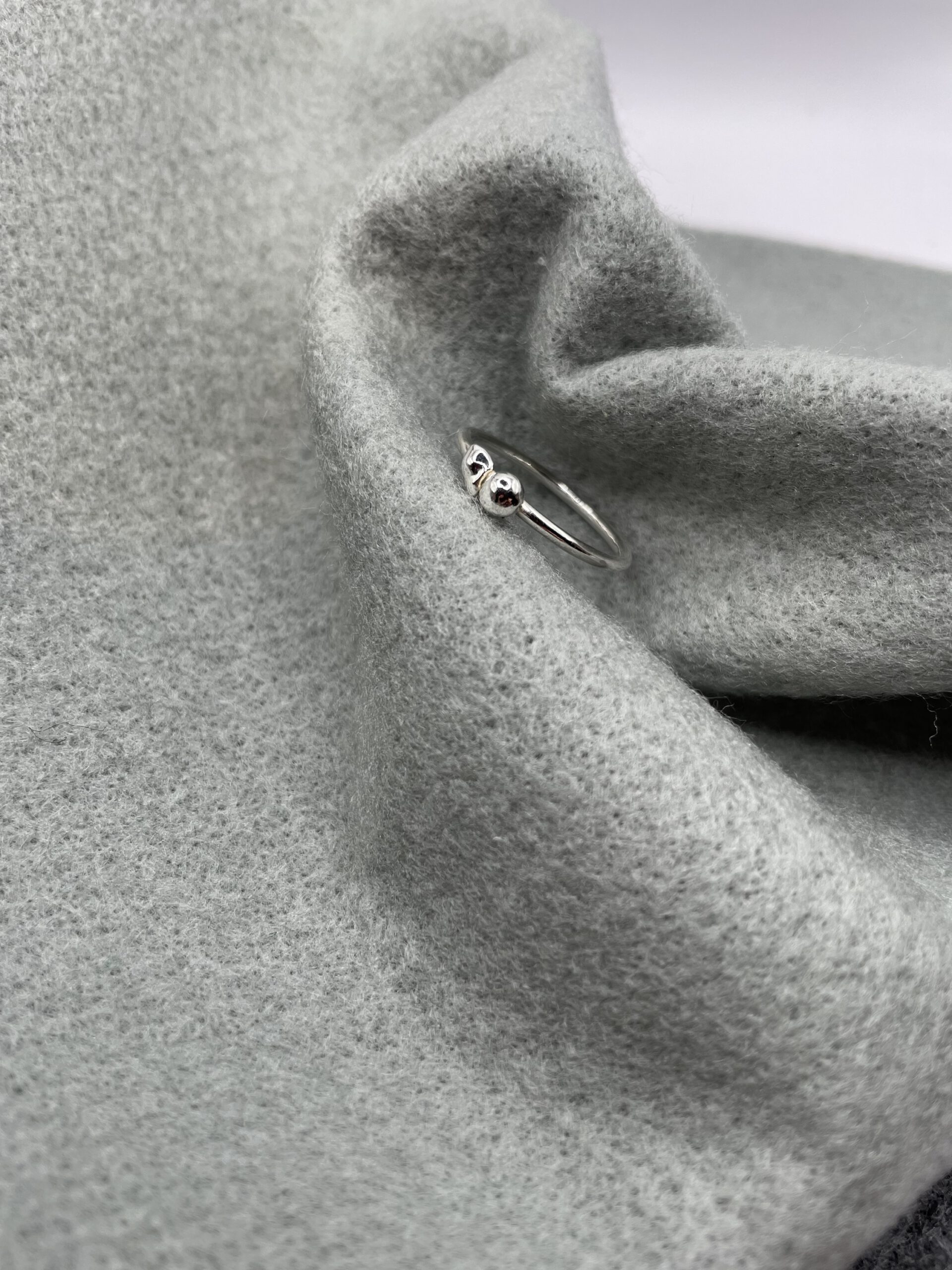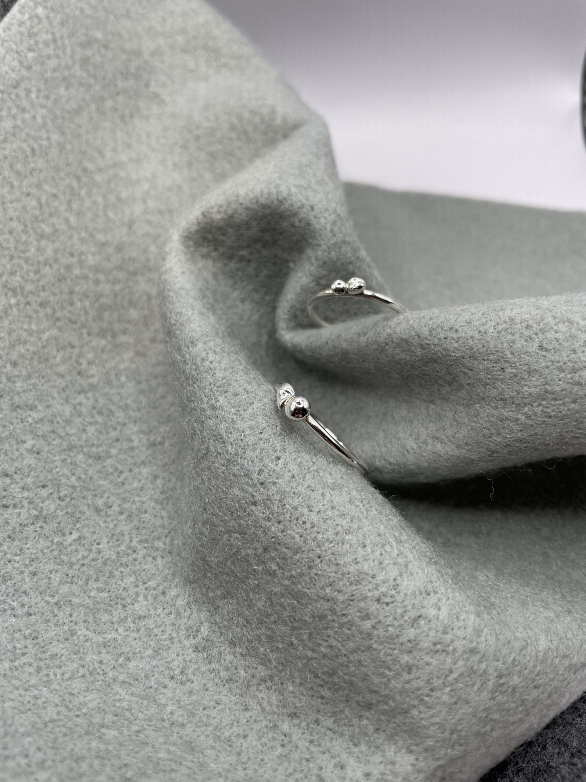 Tropfenring, zwei tropfenförmige Kugeln auf einem Ring, Tropfen aus 999/- Silber, Ringschiene aus 925/- Silber